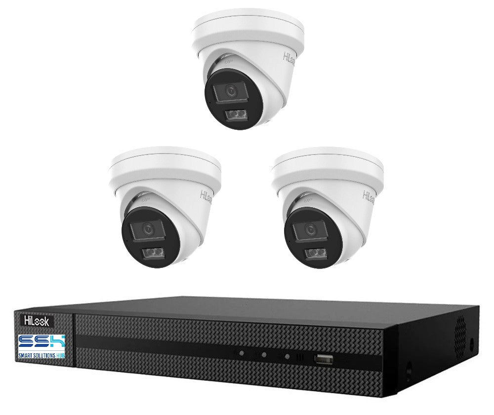 Hikvision HiLook 6MP IPC-T361H-MU Smart Dual IR Camera with IntelliSense 4CH CCTV Kit: 3 x IP Turret Cameras + 4CH NVR NO HDD