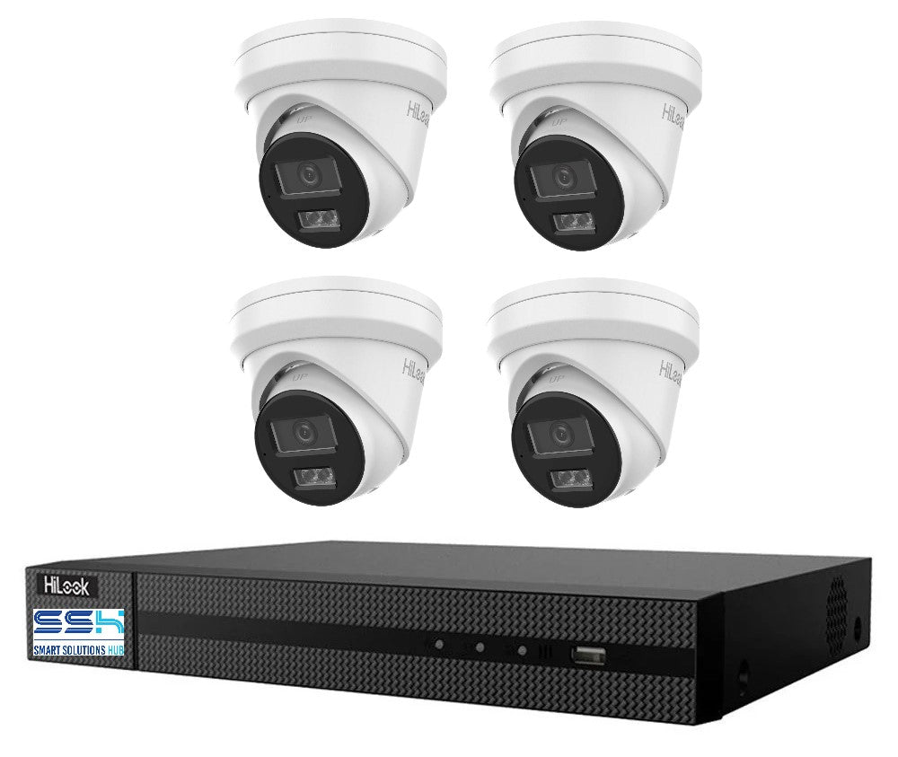 Hikvision HiLook 6MP IPC-T361H-MU Smart Dual IR Camera with IntelliSense 8CH CCTV Kit: 4 x IP Turret Cameras + 8CH NVR NO HDD