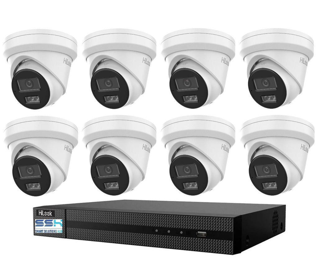 Hikvision HiLook 6MP IPC-T361H-MU Smart Dual IR Camera with IntelliSense 8CH CCTV Kit: 8 x IP Turret Cameras + 16CH NVR NO HDD