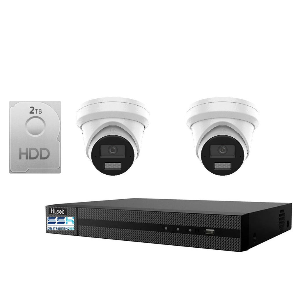 Hikvision HiLook 8MP 4K IPC-T381H-MU Smart Dual IR Camera with IntelliSense 4CH CCTV Kit: 2 x IP Turret Cameras + 4CH NVR