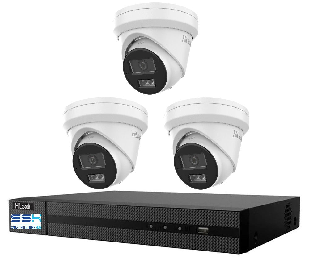 Hikvision HiLook 8MP 4K IPC-T381H-MU Smart Dual IR Camera with IntelliSense 4CH CCTV Kit: 3 x IP Turret Cameras + 4CH NVR NO HDD