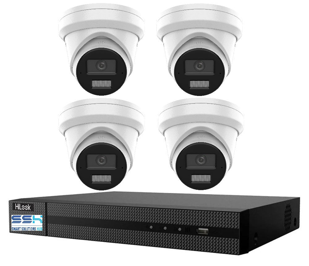 Hikvision HiLook 8MP 4K IPC-T381H-MU Smart Dual IR Camera with IntelliSense 4CH CCTV Kit: 4 x IP Turret Cameras + 4CH NVR NO HDD