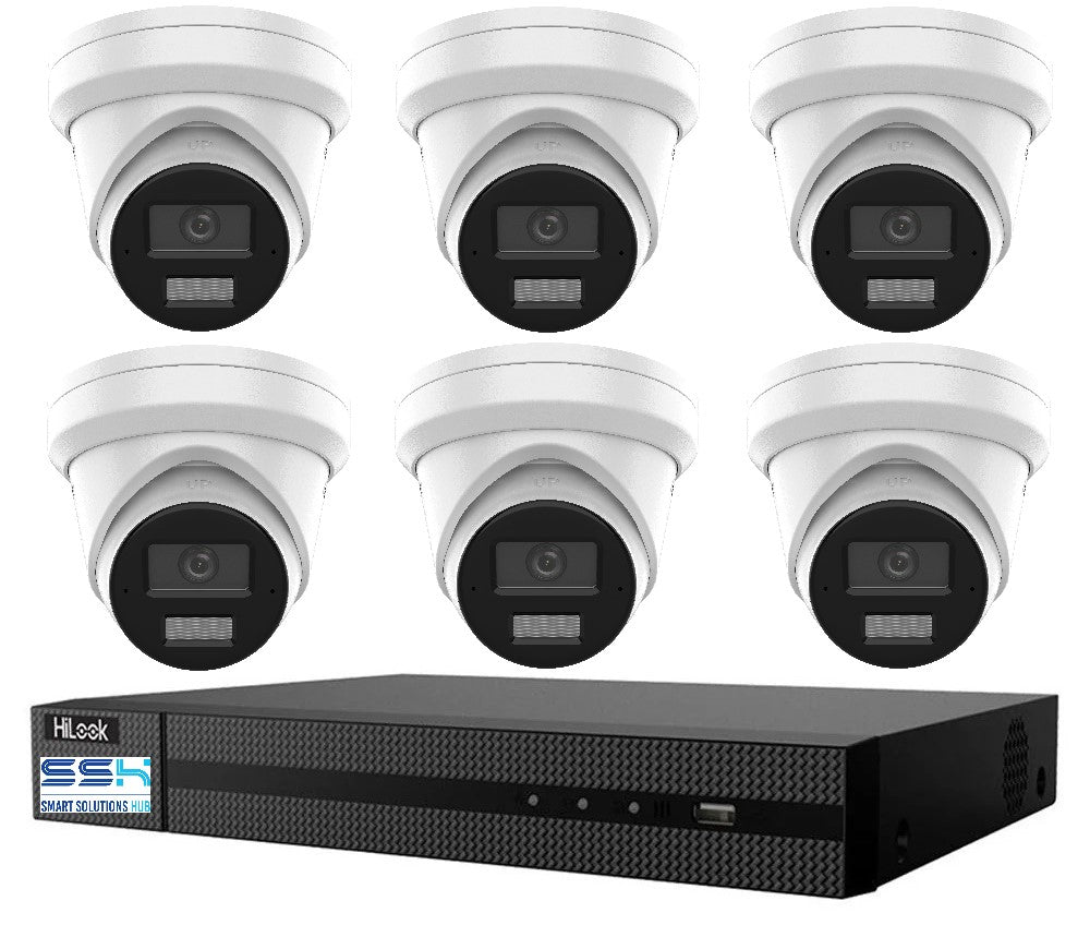 Hikvision HiLook 8MP 4K IPC-T381H-MU Smart Dual IR Camera with IntelliSense 8CH CCTV Kit: 6 x IP Turret Cameras + 8CH NVR NO HDD