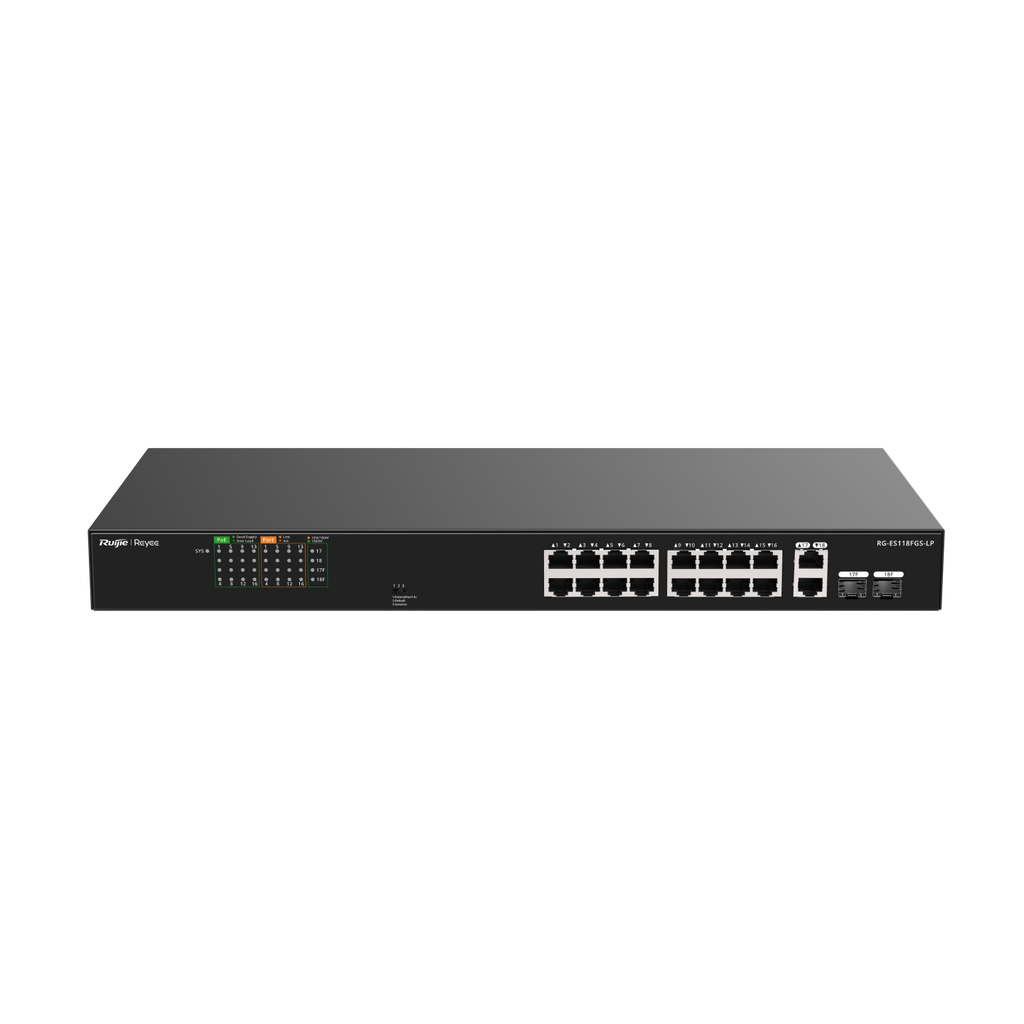 RG-ES118FGS-LP, 16-Port 10/100 Mbps with 2-Port Gigabit Unmanaged PoE Switch